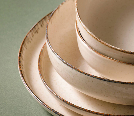 Palmer Antigo is een sterke, maar toch lichtgewicht collectie. Antigo bestaat uit 2 platte borden, een diep bord en een schaal. Daarnaast is er ook een beker beschikbaar voor koffie en thee. Als je kiest voor Palmer Antigo, heb je in één keer alles wat je nodig hebt voor de presentatie van diverse gerechten.